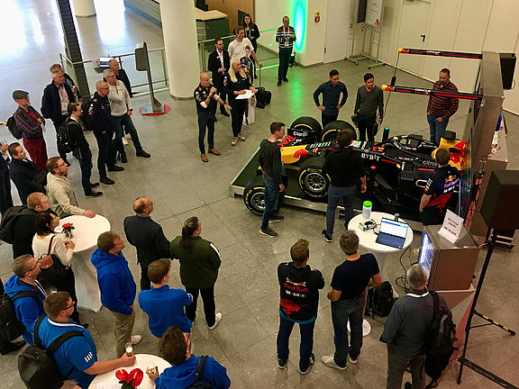 Das Rahmenprogramm der Konferenz + Ausstellung hatte mit einem Community Barbecue am Dienstagabend samt Pit Stop Game by Oracle zwei besondere Highlights zu bieten. Diverse Teams hatten sich gefunden, um den Formel-1-Weltrekord beim Reifenwechsel des Red Bull Racing Team zu knacken (was unseres Wissens auch am Mittwochabend nicht gelang). Das Barbecue erfreute sich trotz des Regens, der beim Schlange stehen so manchen nass machte, großer Beliebtheit.